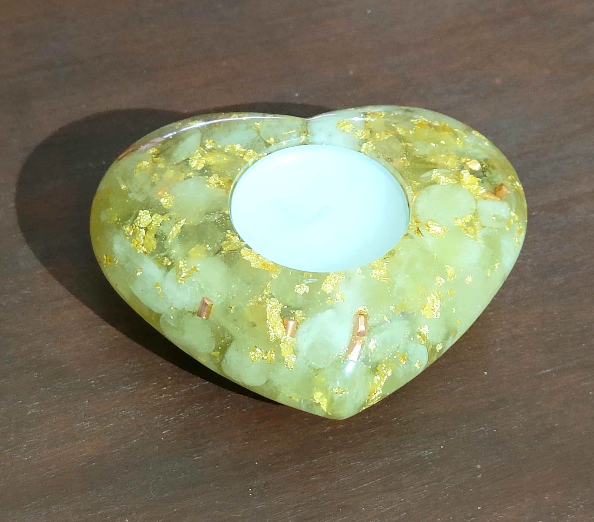 Ce bougeoir est une superbe orgonite fait main d'une résistance à toute épreuve ou presque!