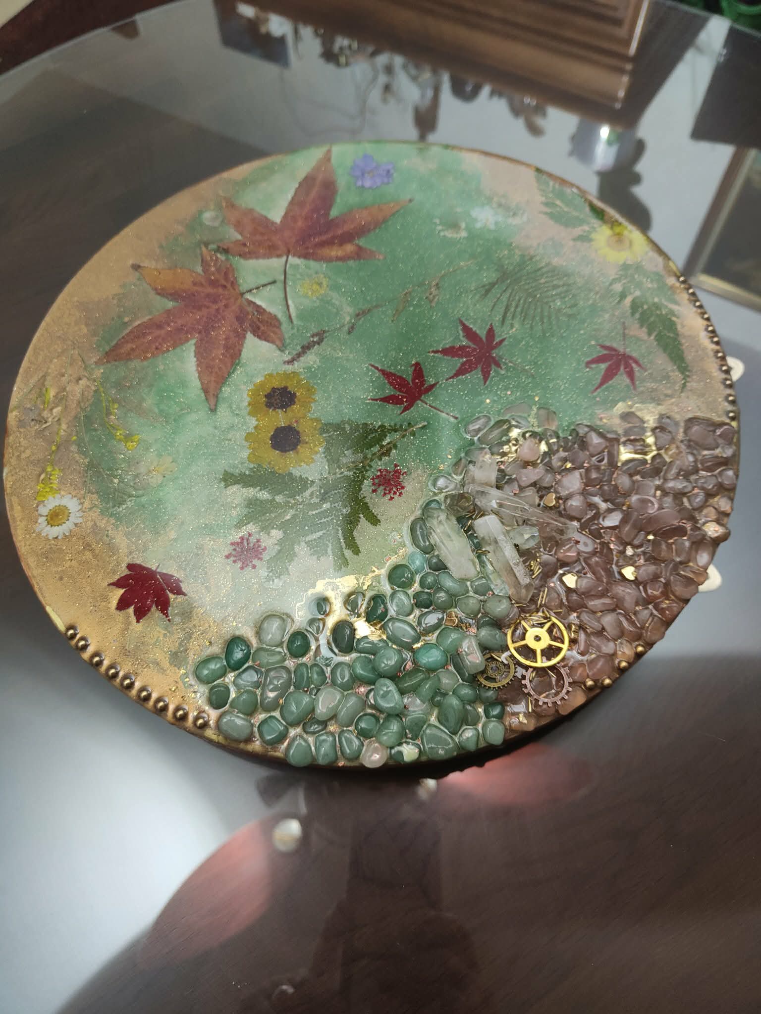 3/ Les pierres, les métaux sous mes conseils* pour que le plateau vibre bien au niveau mégahertz. (Résonance de Schumann) *Certaines pierres ne sont pas compatibles entre elles.